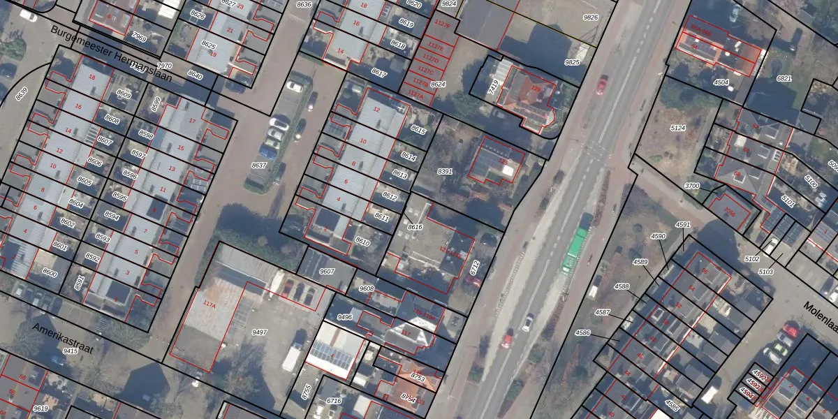 Het perceel waarop Weeresteinstraat 121-A staat heeft een oppervlakte van 529 m². Dit is een groot perceel. De perceeloppervlakte wordt geregistreerd door het Kadaster. Gedetailleerde informatie over de maten van dit perceel kunt u vinden in het rapport Kadastrale kaart met maatvoering van Weeresteinstraat 121-A.