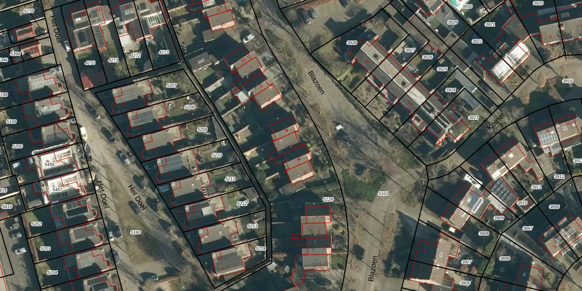 Blazoen 13 is gelegen op kadastraal perceel HVR00E5124. Deze kadastrale aanduiding is uniek en wordt gebruikt door het Kadaster om eigendomsrechten en andere zakelijke rechten vast te leggen. Het perceel maakt onderdeel uit van de kadastrale gemeente Hilvarenbeek.