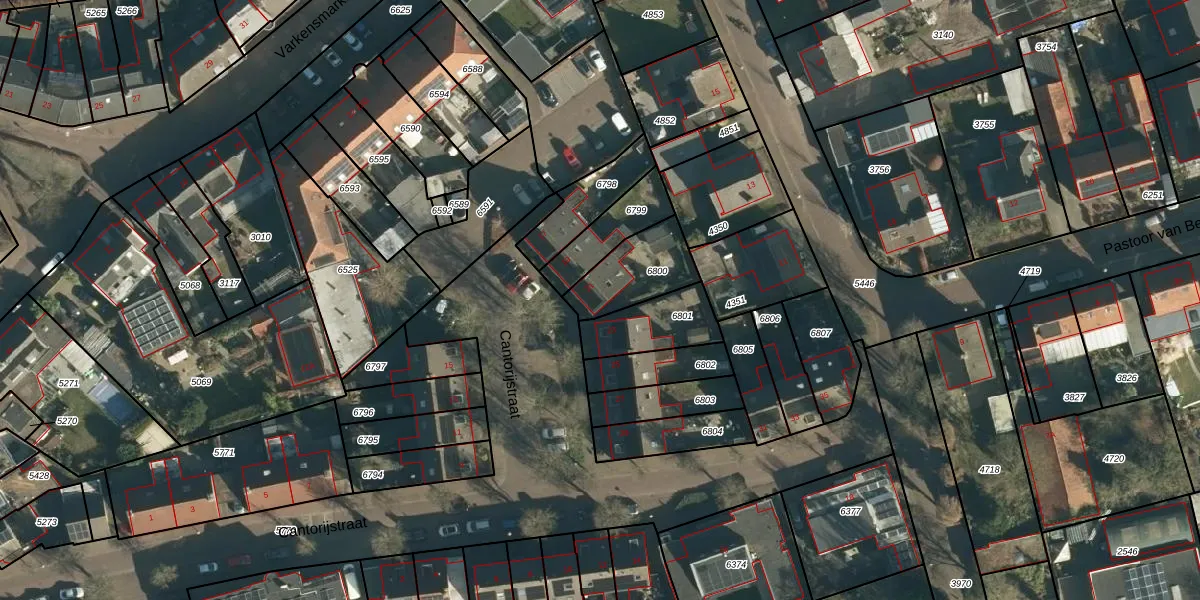 Cantorijstraat 21 is gelegen op kadastraal perceel HVR00D6800. Deze kadastrale aanduiding is uniek en wordt gebruikt door het Kadaster om eigendomsrechten en andere zakelijke rechten vast te leggen. Het perceel maakt onderdeel uit van de kadastrale gemeente Hilvarenbeek.