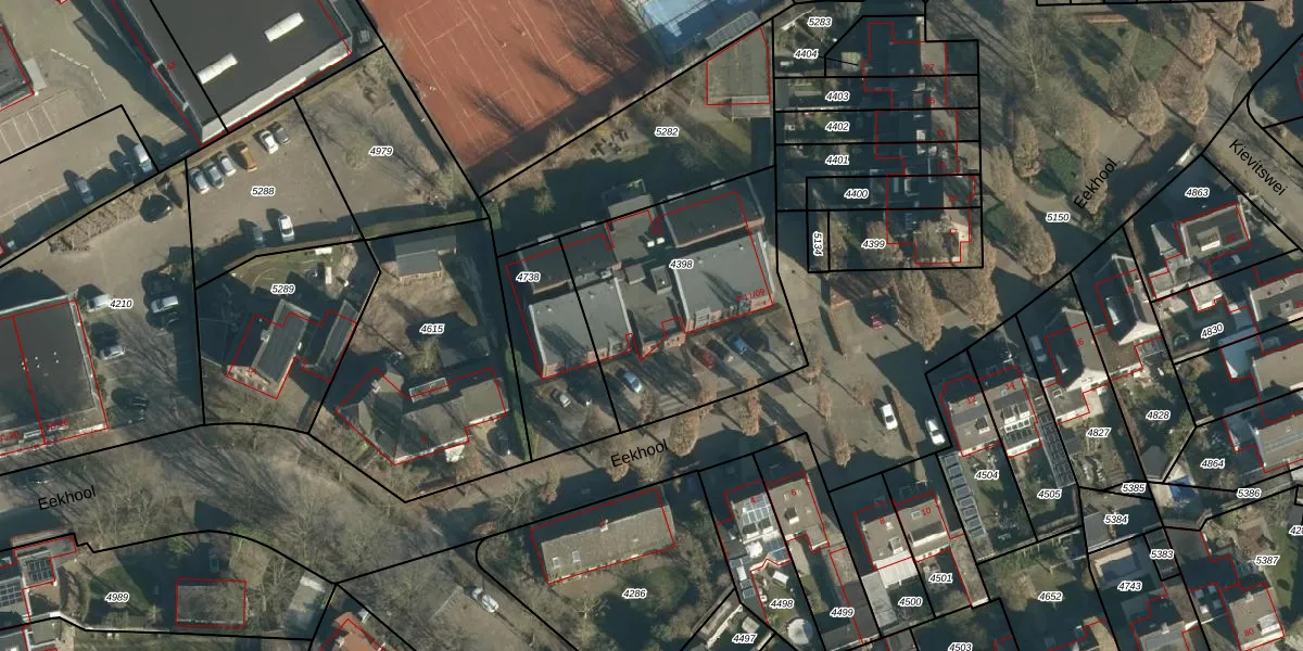 Het perceel waarop Eekhool 11-09 staat heeft een oppervlakte van 989 m². Dit is een groot perceel. De perceeloppervlakte wordt geregistreerd door het Kadaster. Gedetailleerde informatie over de maten van dit perceel kunt u vinden in het rapport Kadastrale kaart met maatvoering van Eekhool 11-09.