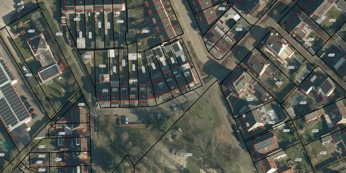 Het perceel waarop Eekhool 69 staat heeft een oppervlakte van 173 m². Dit is een middelgroot perceel. De perceeloppervlakte wordt geregistreerd door het Kadaster. Gedetailleerde informatie over de maten van dit perceel kunt u vinden in het rapport Kadastrale kaart met maatvoering van Eekhool 69.