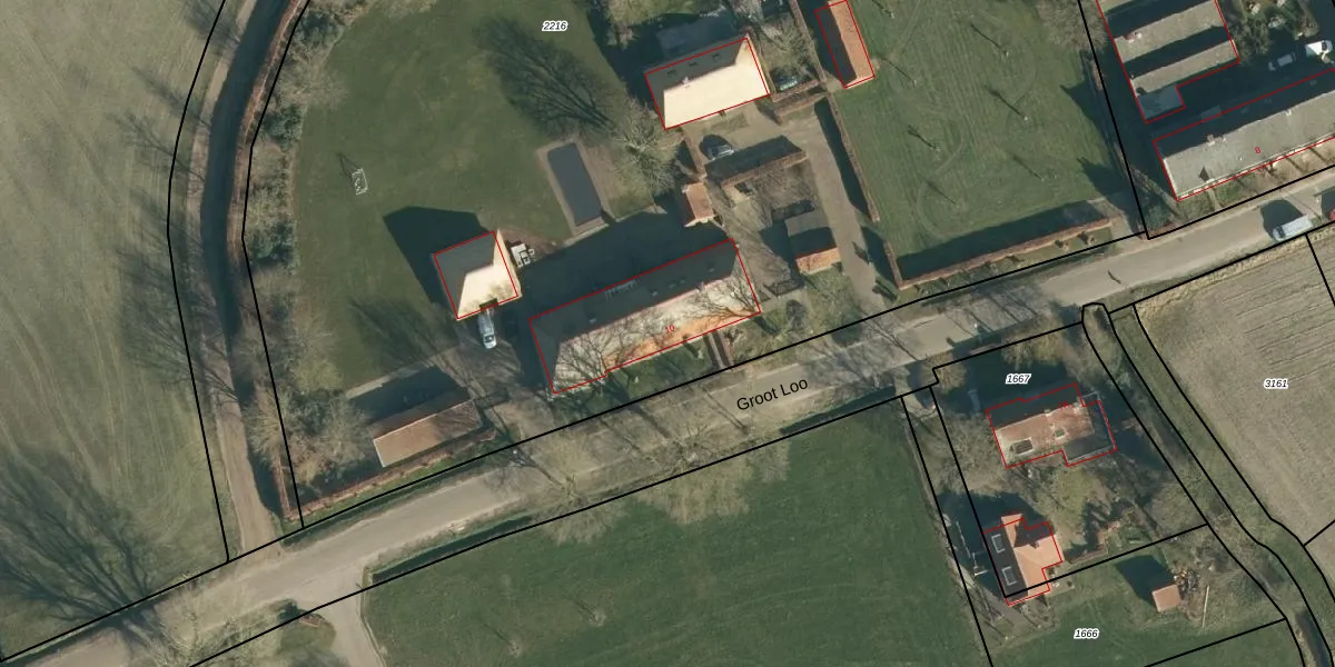 Het perceel waarop Groot Loo 10 staat heeft een oppervlakte van 1,0 ha. Dit is een zeer groot perceel. De perceeloppervlakte wordt geregistreerd door het Kadaster. Gedetailleerde informatie over de maten van dit perceel kunt u vinden in het rapport Kadastrale kaart met maatvoering van Groot Loo 10.