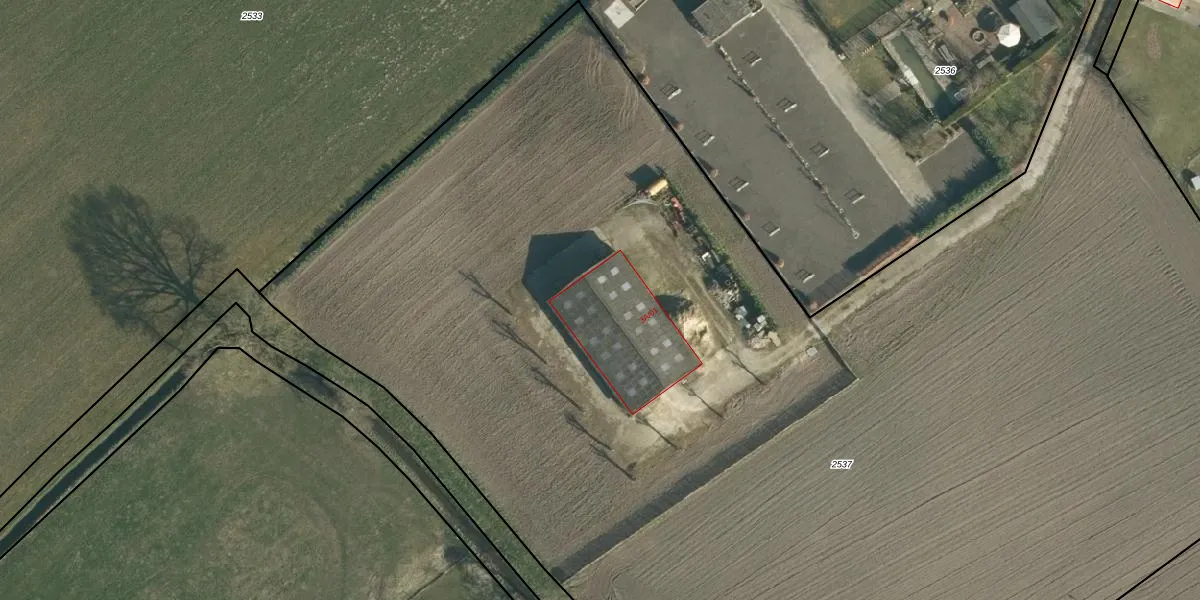 Het adres ligt op het perceel HVR00-P-2537, dat zich in de kadastrale gemeente Hilvarenbeek bevindt. De oppervlakte van het perceel is 1,2 ha. Dat is groter dan gemiddeld in Hilvarenbeek, waar de gemiddelde perceeloppervlakte op 1,0 ha ligt. Het grootste perceel in de kadastrale gemeente is 3,92 km². Het kleinste perceel heeft een oppervlakte van 0 m². Er zijn geen andere adressen aanwezig op het perceel. De huidige grenzen van het perceel zijn digitaal in de Basisregistratie Kadaster (BRK) geregistreerd op 24-04-2014.