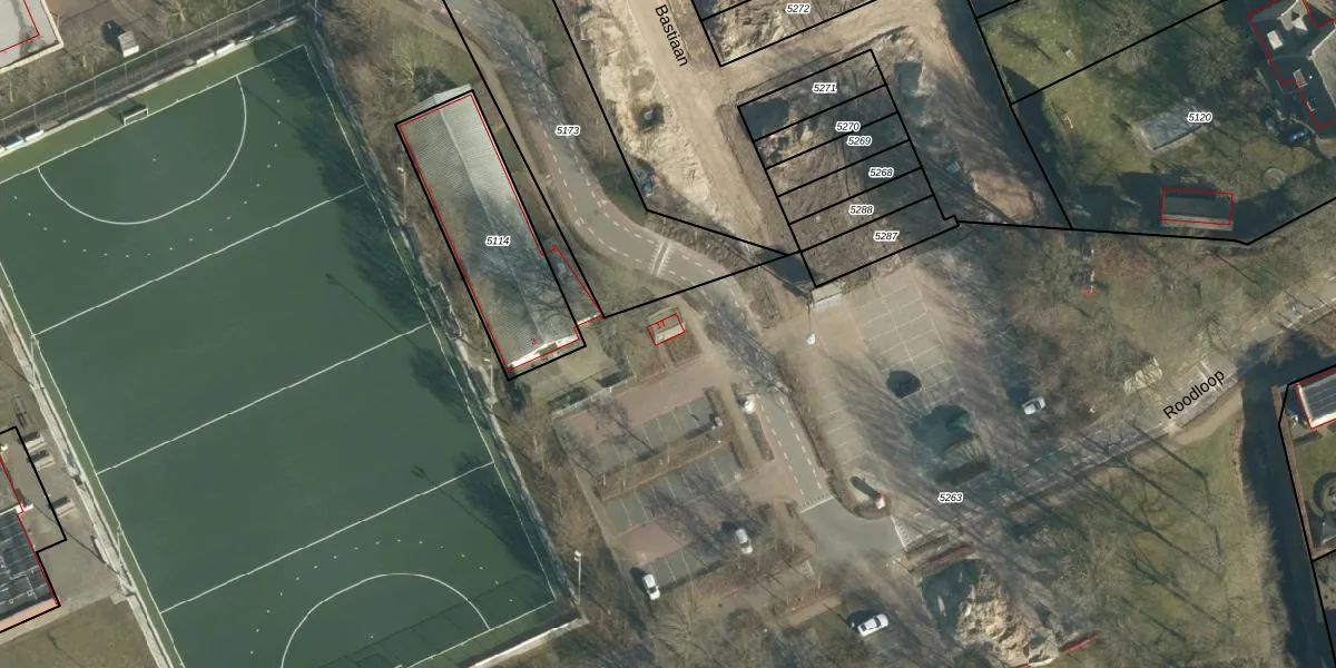 Het perceel waarop Roodloop 1-T staat heeft een oppervlakte van 8,6 ha. Dit is een zeer groot perceel. De perceeloppervlakte wordt geregistreerd door het Kadaster. Gedetailleerde informatie over de maten van dit perceel kunt u vinden in het rapport Kadastrale kaart met maatvoering van Roodloop 1-T.