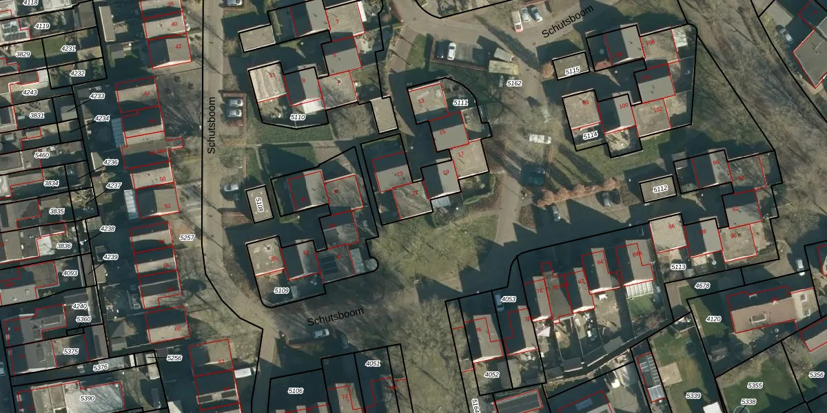 Schutsboom 21 is gelegen op kadastraal perceel HVR00E5111. Deze kadastrale aanduiding is uniek en wordt gebruikt door het Kadaster om eigendomsrechten en andere zakelijke rechten vast te leggen. Het perceel maakt onderdeel uit van de kadastrale gemeente Hilvarenbeek.