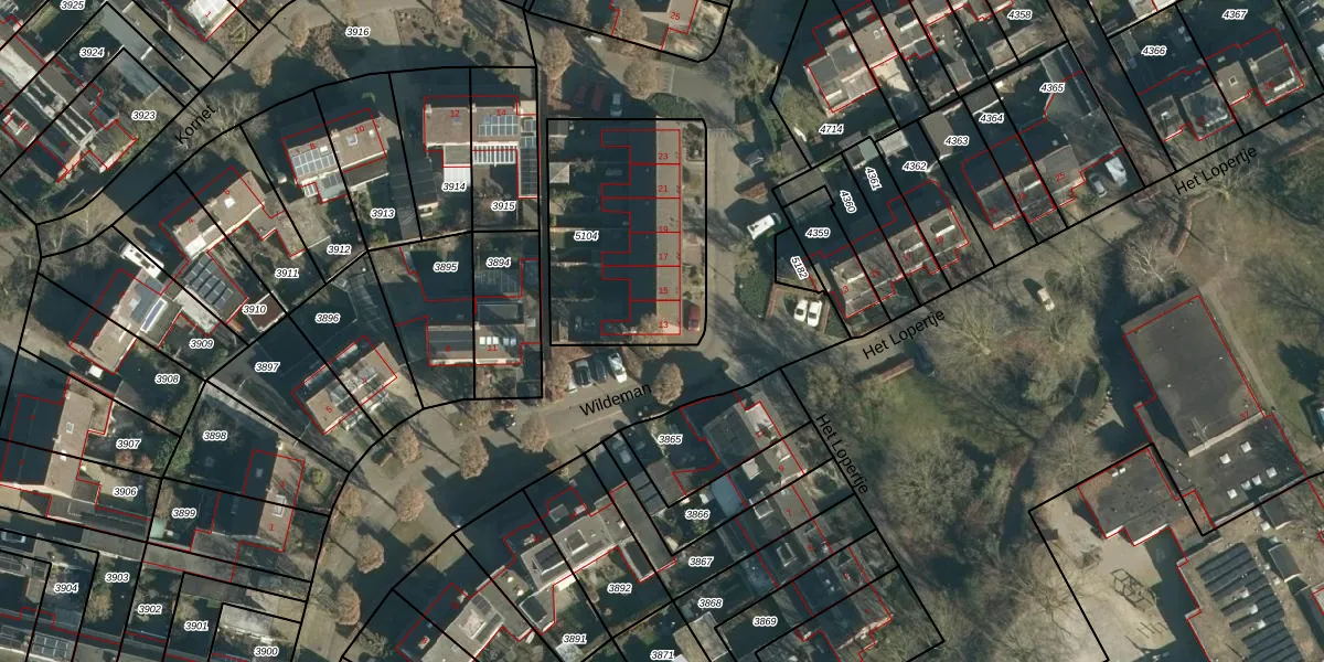 Wildeman 13 is gelegen op kadastraal perceel HVR00E5104. Deze kadastrale aanduiding is uniek en wordt gebruikt door het Kadaster om eigendomsrechten en andere zakelijke rechten vast te leggen. Het perceel maakt onderdeel uit van de kadastrale gemeente Hilvarenbeek.