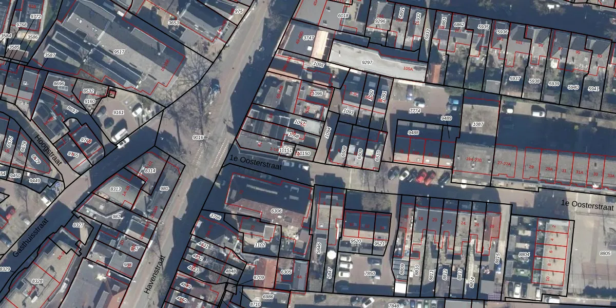Het perceel waarop 1e Oosterstraat 1-D staat heeft een oppervlakte van 31 m². Dit is een klein perceel. De perceeloppervlakte wordt geregistreerd door het Kadaster. Gedetailleerde informatie over de maten van dit perceel kunt u vinden in het rapport Kadastrale kaart met maatvoering van 1e Oosterstraat 1-D.