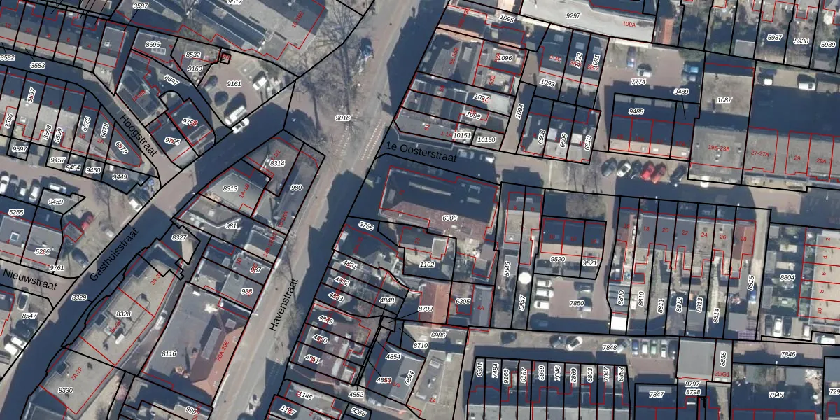 1e Oosterstraat 2-B is gelegen op kadastraal perceel HVS00N6306. Deze kadastrale aanduiding is uniek en wordt gebruikt door het Kadaster om eigendomsrechten en andere zakelijke rechten vast te leggen. Het perceel maakt onderdeel uit van de kadastrale gemeente Hilversum.