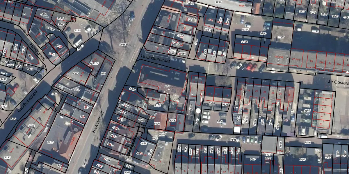 Het perceel waarop 1e Oosterstraat 2-D staat heeft een oppervlakte van 611 m². Dit is een groot perceel. De perceeloppervlakte wordt geregistreerd door het Kadaster. Gedetailleerde informatie over de maten van dit perceel kunt u vinden in het rapport Kadastrale kaart met maatvoering van 1e Oosterstraat 2-D.