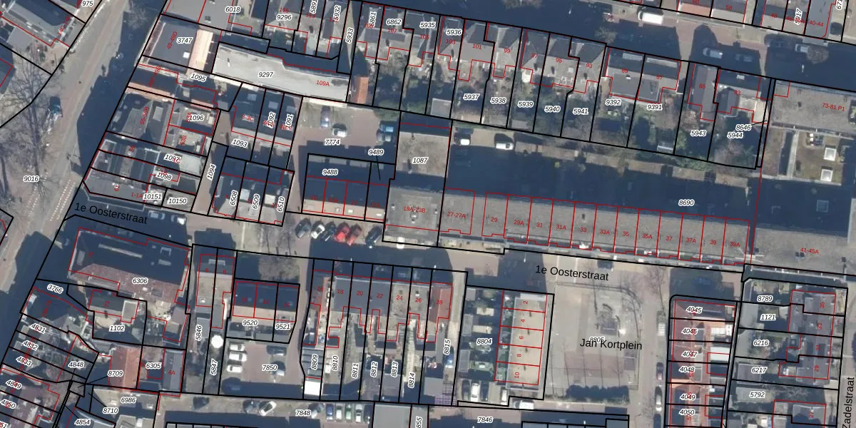 1e Oosterstraat 21-A is gelegen op kadastraal perceel HVS00N1087. Deze kadastrale aanduiding is uniek en wordt gebruikt door het Kadaster om eigendomsrechten en andere zakelijke rechten vast te leggen. Het perceel maakt onderdeel uit van de kadastrale gemeente Hilversum.