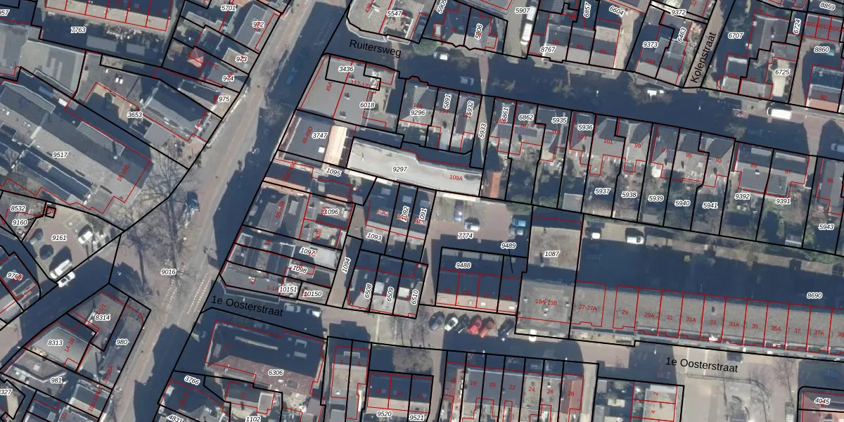 Het perceel waarop 1e Oosterstraat 3-B staat heeft een oppervlakte van 76 m². Dit is een klein perceel. De perceeloppervlakte wordt geregistreerd door het Kadaster. Gedetailleerde informatie over de maten van dit perceel kunt u vinden in het rapport Kadastrale kaart met maatvoering van 1e Oosterstraat 3-B.
