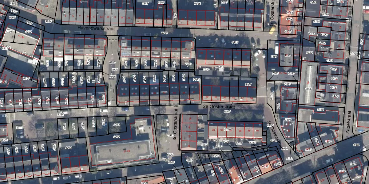 2e Oosterstraat 45 is gelegen op kadastraal perceel HVS00N7941. Deze kadastrale aanduiding is uniek en wordt gebruikt door het Kadaster om eigendomsrechten en andere zakelijke rechten vast te leggen. Het perceel maakt onderdeel uit van de kadastrale gemeente Hilversum.