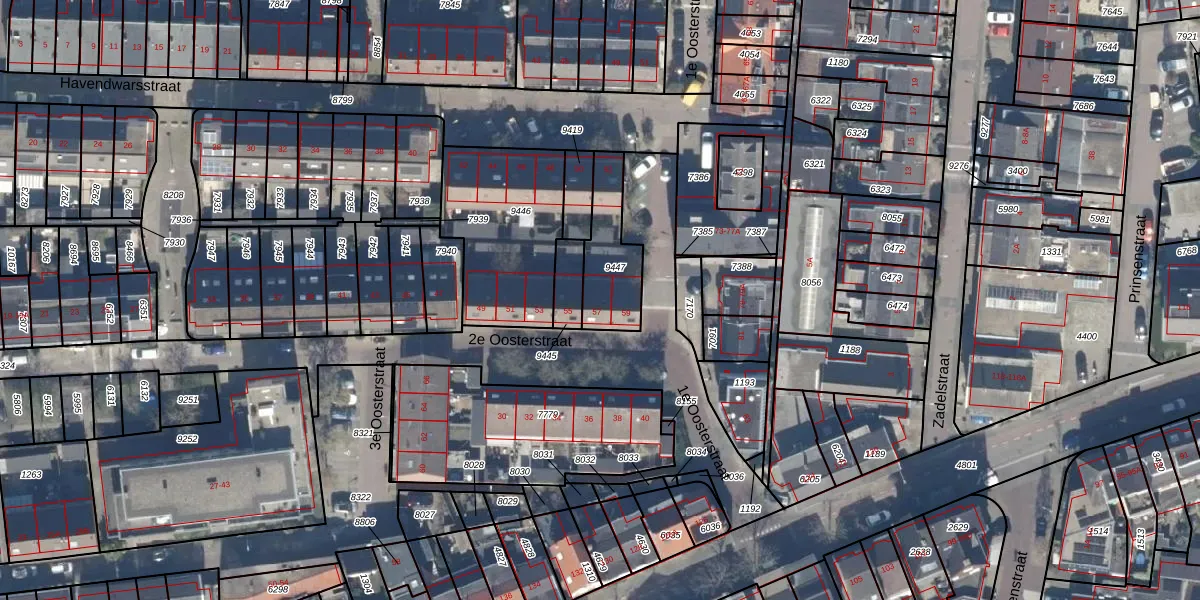 2e Oosterstraat 57 is gelegen op kadastraal perceel HVS00N9447. Deze kadastrale aanduiding is uniek en wordt gebruikt door het Kadaster om eigendomsrechten en andere zakelijke rechten vast te leggen. Het perceel maakt onderdeel uit van de kadastrale gemeente Hilversum.