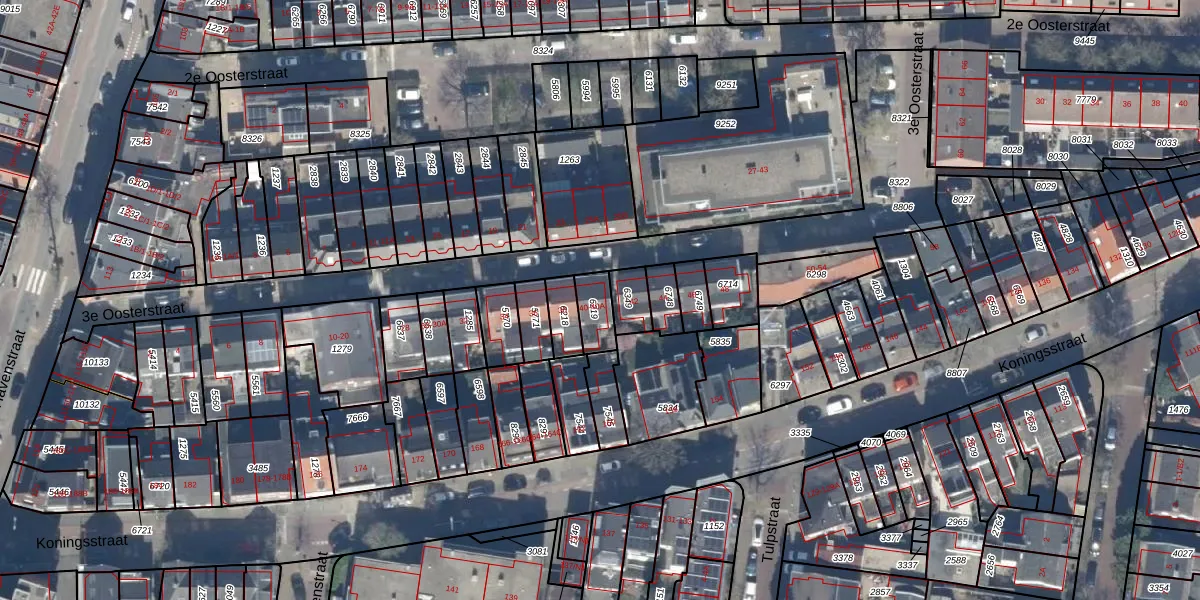 Het perceel waarop 3e Oosterstraat 40-A staat heeft een oppervlakte van 85 m². Dit is een klein perceel. De perceeloppervlakte wordt geregistreerd door het Kadaster. Gedetailleerde informatie over de maten van dit perceel kunt u vinden in het rapport Kadastrale kaart met maatvoering van 3e Oosterstraat 40-A.