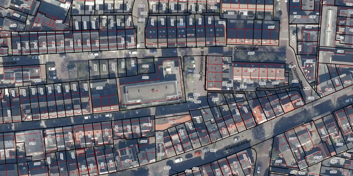 Het perceel waarop 3e Oosterstraat 41 staat heeft een oppervlakte van 845 m². Dit is een groot perceel. De perceeloppervlakte wordt geregistreerd door het Kadaster. Gedetailleerde informatie over de maten van dit perceel kunt u vinden in het rapport Kadastrale kaart met maatvoering van 3e Oosterstraat 41.