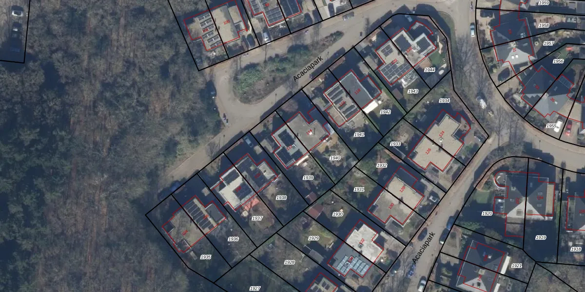 Het perceel waarop Acaciapark 112 staat heeft een oppervlakte van 374 m². Dit is een groot perceel. De perceeloppervlakte wordt geregistreerd door het Kadaster. Gedetailleerde informatie over de maten van dit perceel kunt u vinden in het rapport Kadastrale kaart met maatvoering van Acaciapark 112.