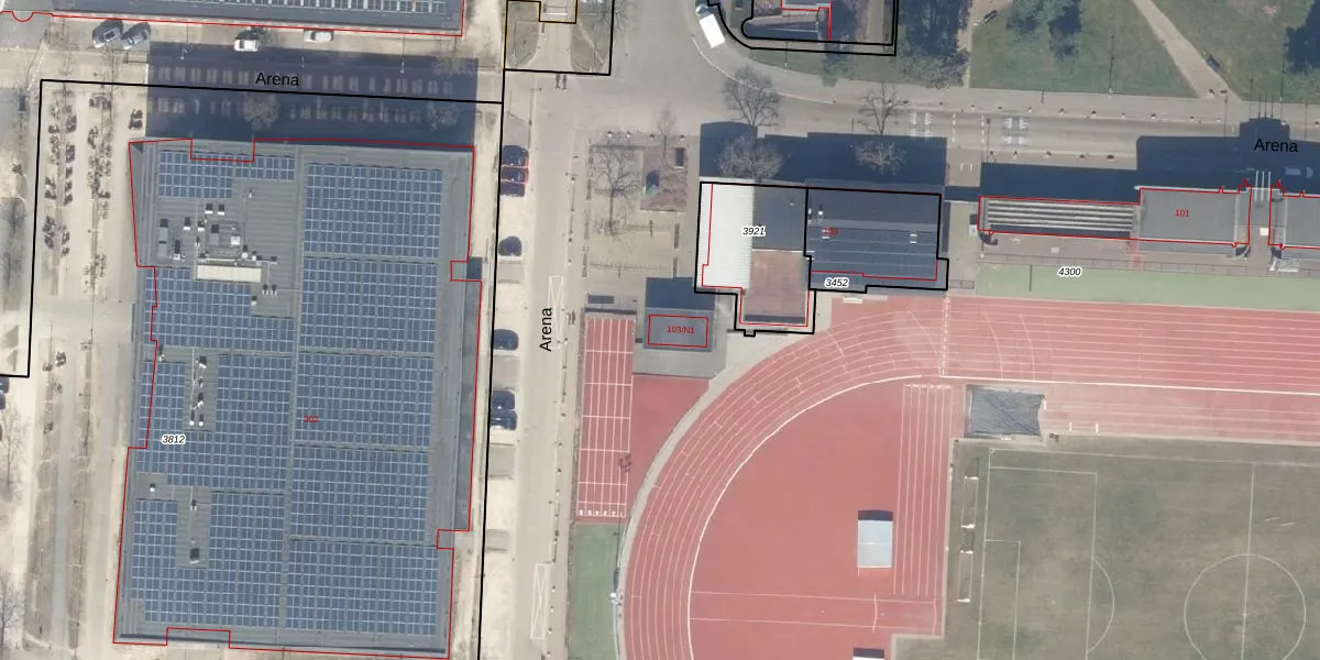 Het perceel waarop Arena 103-N1 staat heeft een oppervlakte van 3,4 ha. Dit is een zeer groot perceel. De perceeloppervlakte wordt geregistreerd door het Kadaster. Gedetailleerde informatie over de maten van dit perceel kunt u vinden in het rapport Kadastrale kaart met maatvoering van Arena 103-N1.