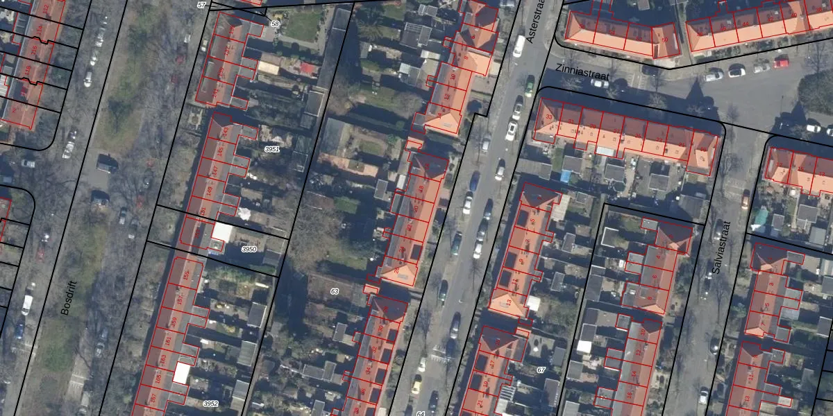 Het perceel waarop Asterstraat 20 staat heeft een oppervlakte van 5330 m². Dit is een zeer groot perceel. De perceeloppervlakte wordt geregistreerd door het Kadaster. Gedetailleerde informatie over de maten van dit perceel kunt u vinden in het rapport Kadastrale kaart met maatvoering van Asterstraat 20.