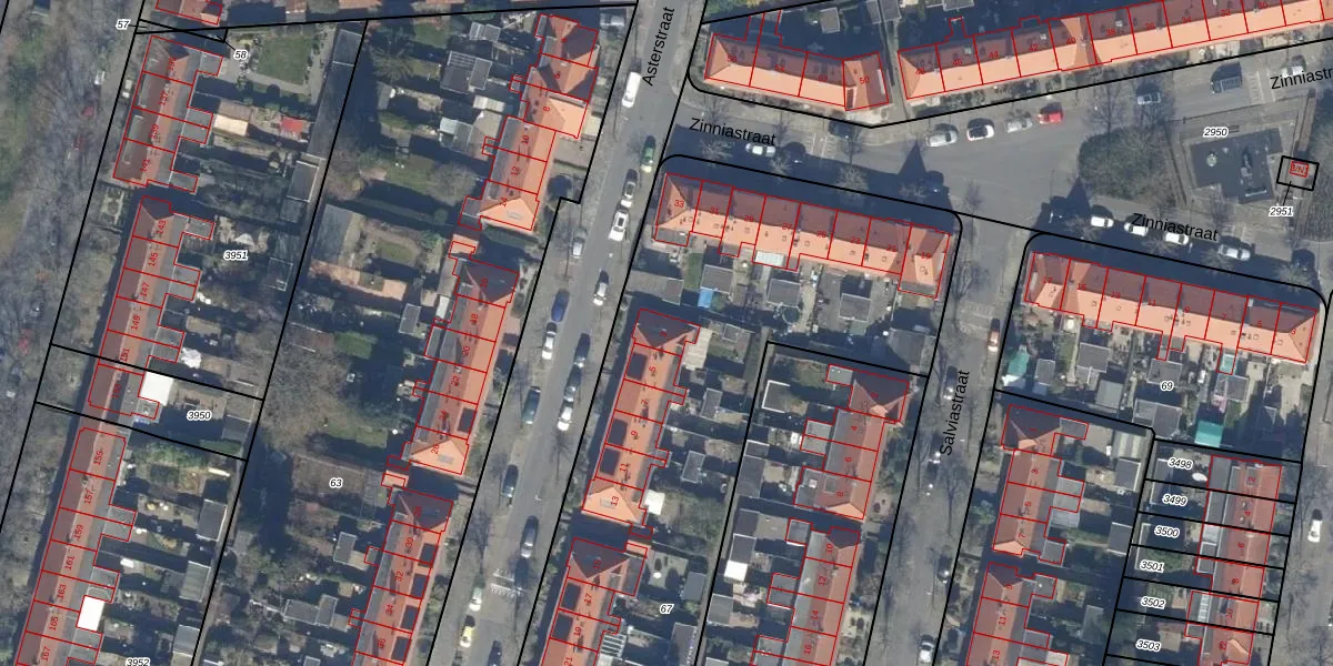 Het perceel waarop Asterstraat 3 staat heeft een oppervlakte van 4145 m². Dit is een zeer groot perceel. De perceeloppervlakte wordt geregistreerd door het Kadaster. Gedetailleerde informatie over de maten van dit perceel kunt u vinden in het rapport Kadastrale kaart met maatvoering van Asterstraat 3.