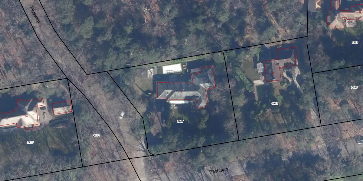 Het perceel waarop Bachlaan 37 staat heeft een oppervlakte van 2717 m². Dit is een zeer groot perceel. De perceeloppervlakte wordt geregistreerd door het Kadaster. Gedetailleerde informatie over de maten van dit perceel kunt u vinden in het rapport Kadastrale kaart met maatvoering van Bachlaan 37.