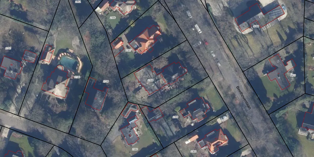 Het perceel waarop Beethovenlaan 13-9 staat heeft een oppervlakte van 1326 m². Dit is een zeer groot perceel. De perceeloppervlakte wordt geregistreerd door het Kadaster. Gedetailleerde informatie over de maten van dit perceel kunt u vinden in het rapport Kadastrale kaart met maatvoering van Beethovenlaan 13-9.