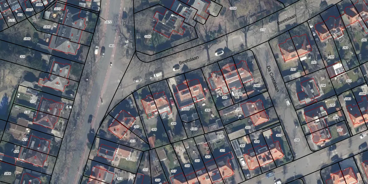 Het perceel waarop Beetslaan 21 staat heeft een oppervlakte van 254 m². Dit is een middelgroot perceel. De perceeloppervlakte wordt geregistreerd door het Kadaster. Gedetailleerde informatie over de maten van dit perceel kunt u vinden in het rapport Kadastrale kaart met maatvoering van Beetslaan 21.