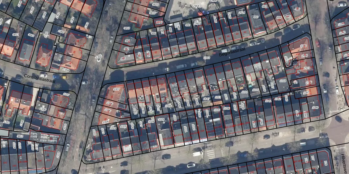 Begoniastraat 67 is gelegen op kadastraal perceel HVS00L2644. Deze kadastrale aanduiding is uniek en wordt gebruikt door het Kadaster om eigendomsrechten en andere zakelijke rechten vast te leggen. Het perceel maakt onderdeel uit van de kadastrale gemeente Hilversum.