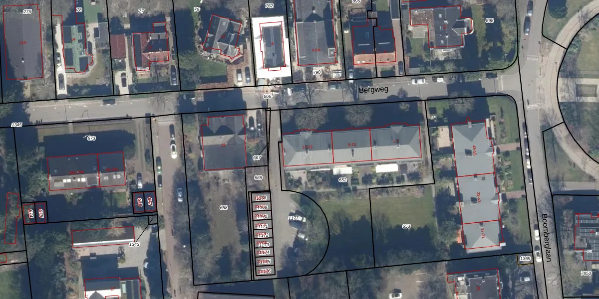 Bergweg 23 is gelegen op kadastraal perceel HVS00P652. Deze kadastrale aanduiding is uniek en wordt gebruikt door het Kadaster om eigendomsrechten en andere zakelijke rechten vast te leggen. Het perceel maakt onderdeel uit van de kadastrale gemeente Hilversum.