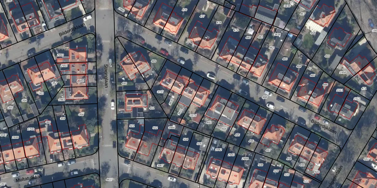 Het perceel waarop Bilderdijklaan 17 staat heeft een oppervlakte van 182 m². Dit is een middelgroot perceel. De perceeloppervlakte wordt geregistreerd door het Kadaster. Gedetailleerde informatie over de maten van dit perceel kunt u vinden in het rapport Kadastrale kaart met maatvoering van Bilderdijklaan 17.