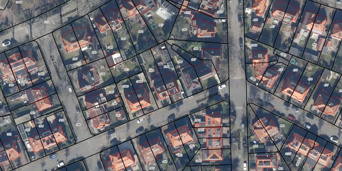Gebruik de zoekbalk of klik op een perceel voor informatie over de adressen binnen dit perceel.