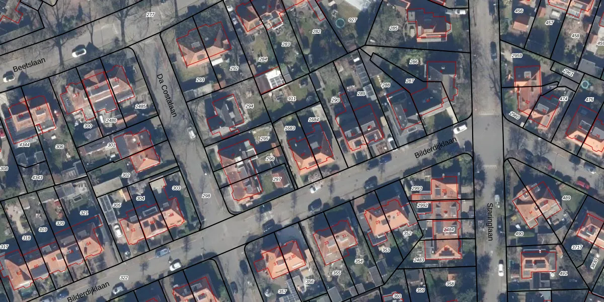 Gebruik de zoekbalk of klik op een perceel voor informatie over de adressen binnen dit perceel.