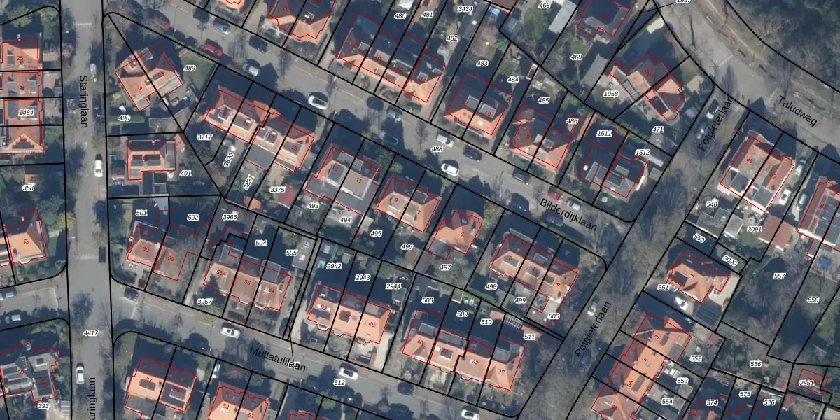 Bilderdijklaan 7 is gelegen op kadastraal perceel HVS00M496. Deze kadastrale aanduiding is uniek en wordt gebruikt door het Kadaster om eigendomsrechten en andere zakelijke rechten vast te leggen. Het perceel maakt onderdeel uit van de kadastrale gemeente Hilversum.