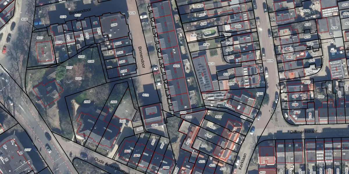 Het perceel waarop Binnendoor 34 staat heeft een oppervlakte van 1119 m². Dit is een zeer groot perceel. De perceeloppervlakte wordt geregistreerd door het Kadaster. Gedetailleerde informatie over de maten van dit perceel kunt u vinden in het rapport Kadastrale kaart met maatvoering van Binnendoor 34.