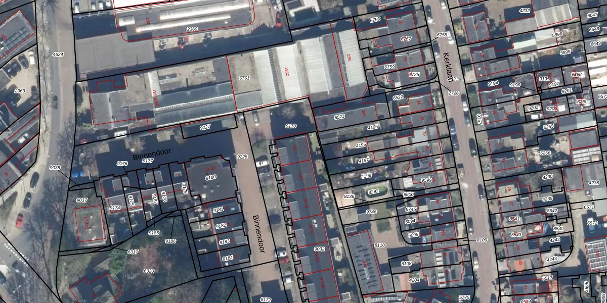 Binnendoor 6 is gelegen op kadastraal perceel HVS00N9032. Deze kadastrale aanduiding is uniek en wordt gebruikt door het Kadaster om eigendomsrechten en andere zakelijke rechten vast te leggen. Het perceel maakt onderdeel uit van de kadastrale gemeente Hilversum.