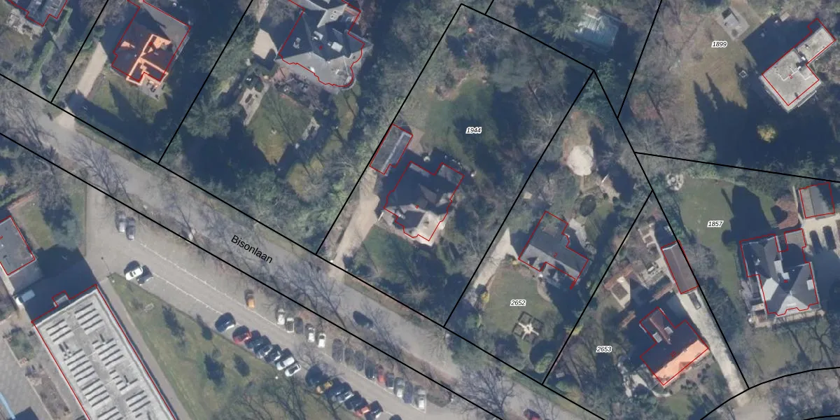 Het perceel waarop Bisonlaan 4 staat heeft een oppervlakte van 2460 m². Dit is een zeer groot perceel. De perceeloppervlakte wordt geregistreerd door het Kadaster. Gedetailleerde informatie over de maten van dit perceel kunt u vinden in het rapport Kadastrale kaart met maatvoering van Bisonlaan 4.