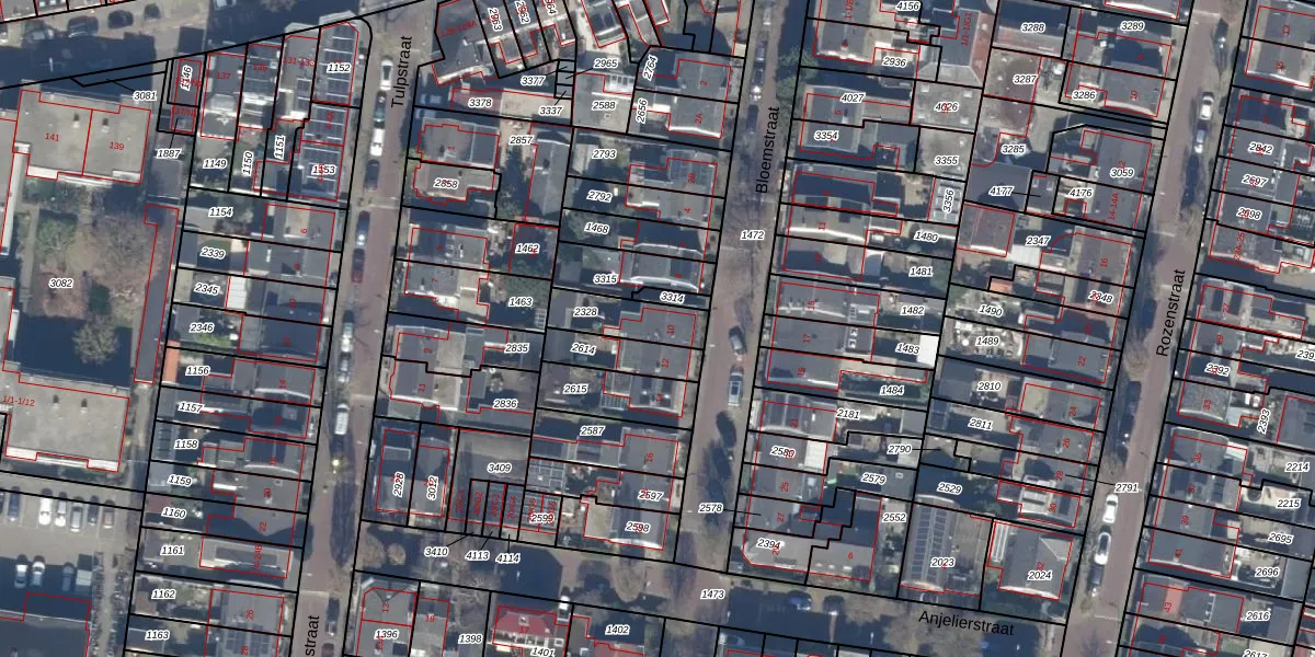Gebruik de zoekbalk of klik op een perceel voor informatie over de adressen binnen dit perceel.