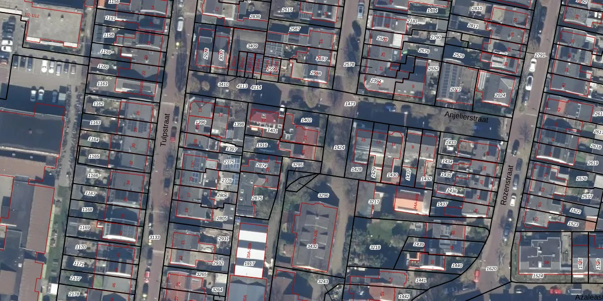 Gebruik de zoekbalk of klik op een perceel voor informatie over de adressen binnen dit perceel.