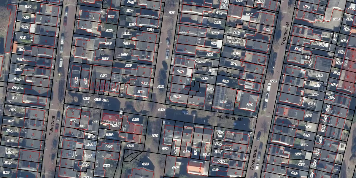 Gebruik de zoekbalk of klik op een perceel voor informatie over de adressen binnen dit perceel.
