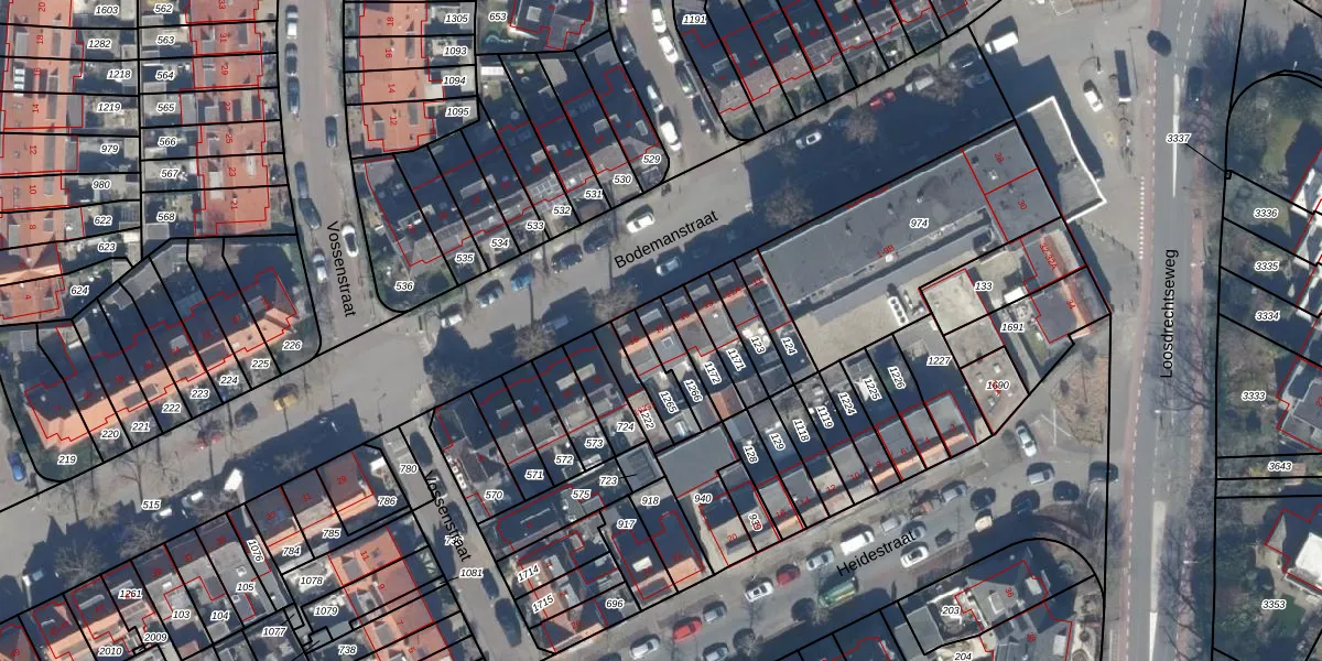 Het perceel waarop Bodemanstraat 17 staat heeft een oppervlakte van 77 m². Dit is een klein perceel. De perceeloppervlakte wordt geregistreerd door het Kadaster. Gedetailleerde informatie over de maten van dit perceel kunt u vinden in het rapport Kadastrale kaart met maatvoering van Bodemanstraat 17.