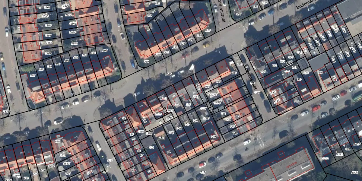 Gebruik de zoekbalk of klik op een perceel voor informatie over de adressen binnen dit perceel.