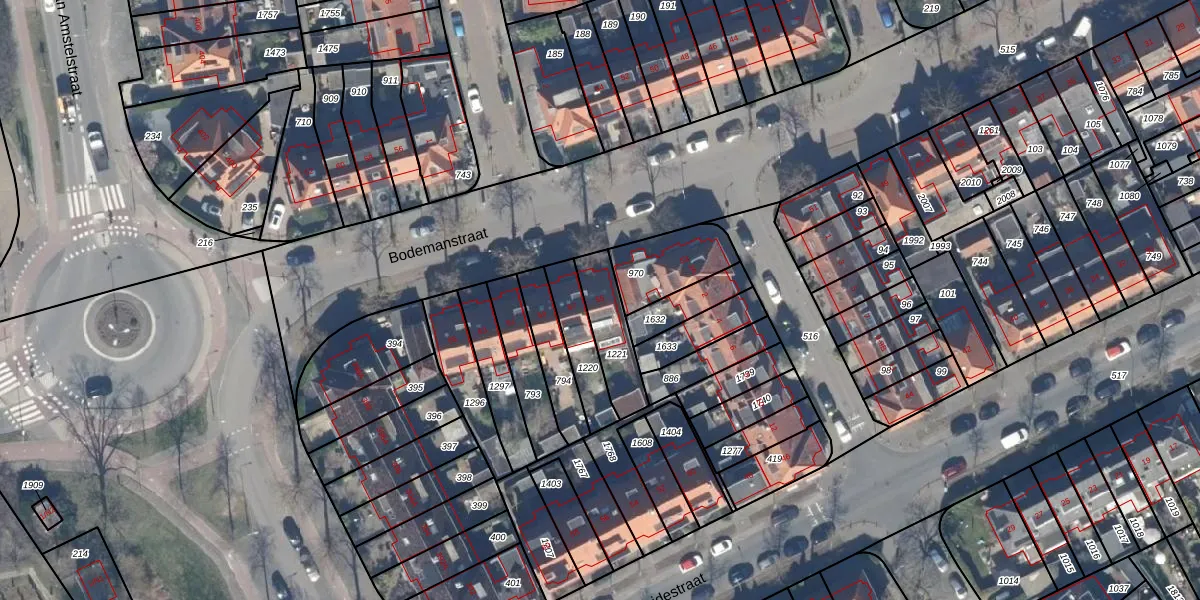 Het perceel waarop Bodemanstraat 55 staat heeft een oppervlakte van 163 m². Dit is een middelgroot perceel. De perceeloppervlakte wordt geregistreerd door het Kadaster. Gedetailleerde informatie over de maten van dit perceel kunt u vinden in het rapport Kadastrale kaart met maatvoering van Bodemanstraat 55.