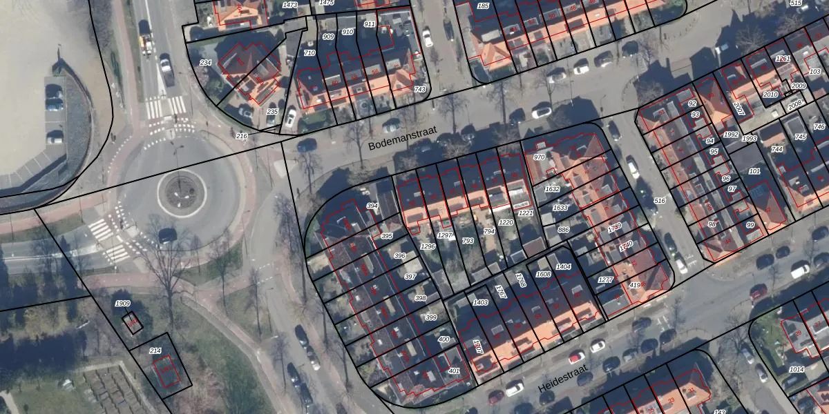 Het perceel waarop Bodemanstraat 65 staat heeft een oppervlakte van 160 m². Dit is een middelgroot perceel. De perceeloppervlakte wordt geregistreerd door het Kadaster. Gedetailleerde informatie over de maten van dit perceel kunt u vinden in het rapport Kadastrale kaart met maatvoering van Bodemanstraat 65.