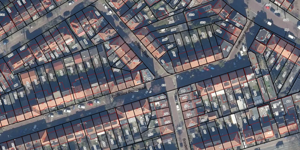 Het perceel waarop Bordetstraat 13 staat heeft een oppervlakte van 71 m². Dit is een klein perceel. De perceeloppervlakte wordt geregistreerd door het Kadaster. Gedetailleerde informatie over de maten van dit perceel kunt u vinden in het rapport Kadastrale kaart met maatvoering van Bordetstraat 13.