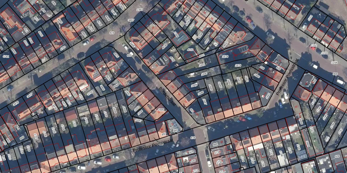 Het perceel waarop Bordetstraat 18 staat heeft een oppervlakte van 175 m². Dit is een middelgroot perceel. De perceeloppervlakte wordt geregistreerd door het Kadaster. Gedetailleerde informatie over de maten van dit perceel kunt u vinden in het rapport Kadastrale kaart met maatvoering van Bordetstraat 18.