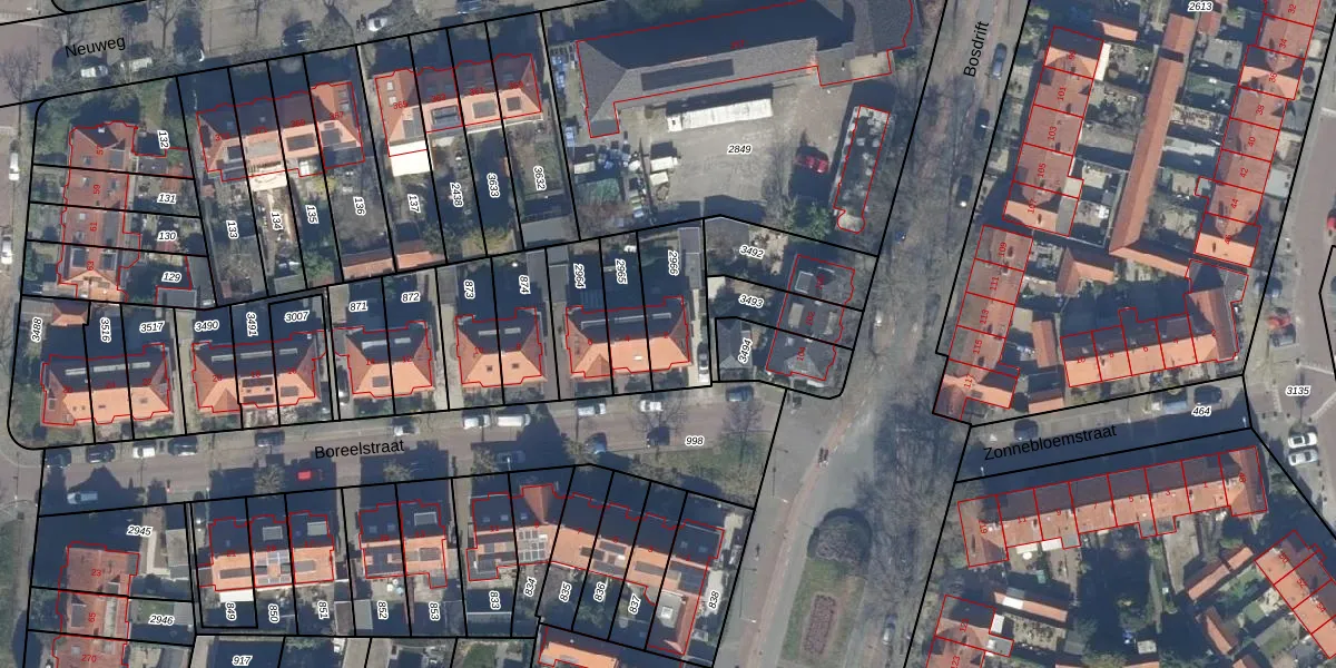 Gebruik de zoekbalk of klik op een perceel voor informatie over de adressen binnen dit perceel.