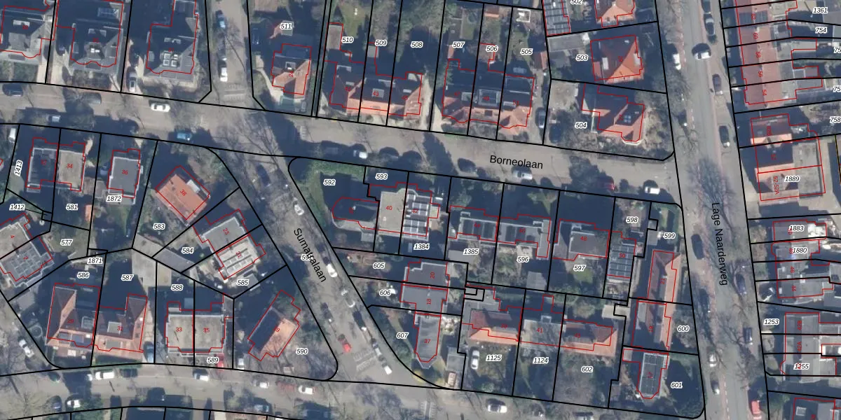 Het perceel waarop Borneolaan 42 staat heeft een oppervlakte van 215 m². Dit is een middelgroot perceel. De perceeloppervlakte wordt geregistreerd door het Kadaster. Gedetailleerde informatie over de maten van dit perceel kunt u vinden in het rapport Kadastrale kaart met maatvoering van Borneolaan 42.