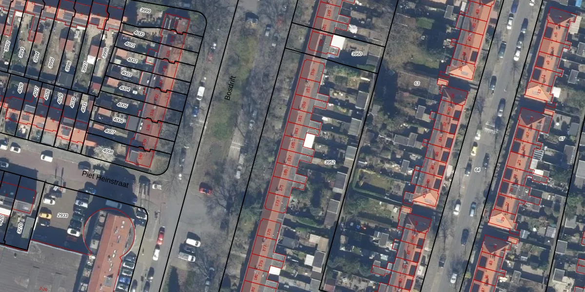 Bosdrift 165 is gelegen op kadastraal perceel HVS00L3952. Deze kadastrale aanduiding is uniek en wordt gebruikt door het Kadaster om eigendomsrechten en andere zakelijke rechten vast te leggen. Het perceel maakt onderdeel uit van de kadastrale gemeente Hilversum.