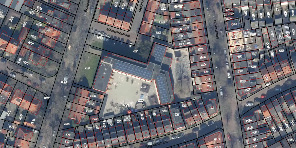 Het adres is gelegen op perceel 979 in de sectie L en de kadastrale gemeente Hilversum. De kadastrale aanduiding is aldus HVS00-L-979. De oppervlakte van het perceel is 2600 m². Dat is groter dan gemiddeld in Hilversum, waar de gemiddelde perceeloppervlakte op 1394,51 m² ligt. De grootste perceeloppervlakte in de kadastrale gemeente is 91,7 ha. De kleinste oppervlakte bedraagt 0 m². Op het perceel bevinden zich geen andere adressen. In de Basisregistratie Kadaster (BRK) werden de grenzen van het perceel geregistreerd op 30-12-2011.