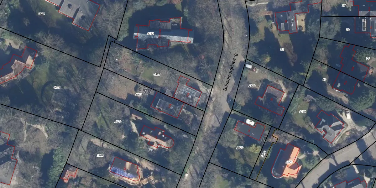 Bussumergrintweg 21-B is gelegen op kadastraal perceel HVS00C6972. Deze kadastrale aanduiding is uniek en wordt gebruikt door het Kadaster om eigendomsrechten en andere zakelijke rechten vast te leggen. Het perceel maakt onderdeel uit van de kadastrale gemeente Hilversum.