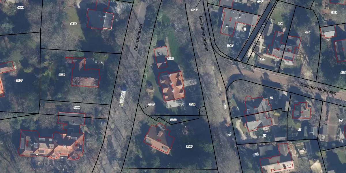Bussumergrintweg 43 is gelegen op kadastraal perceel HVS00C5362. Deze kadastrale aanduiding is uniek en wordt gebruikt door het Kadaster om eigendomsrechten en andere zakelijke rechten vast te leggen. Het perceel maakt onderdeel uit van de kadastrale gemeente Hilversum.